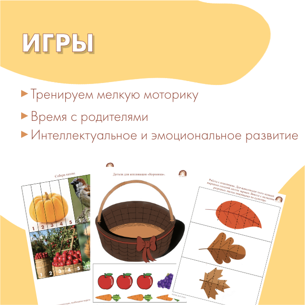 Аппликации, работа с ножницами, шнуровка, пластилиновые заплатки, пазлы, шаблоны для гирлянды, раскраски.